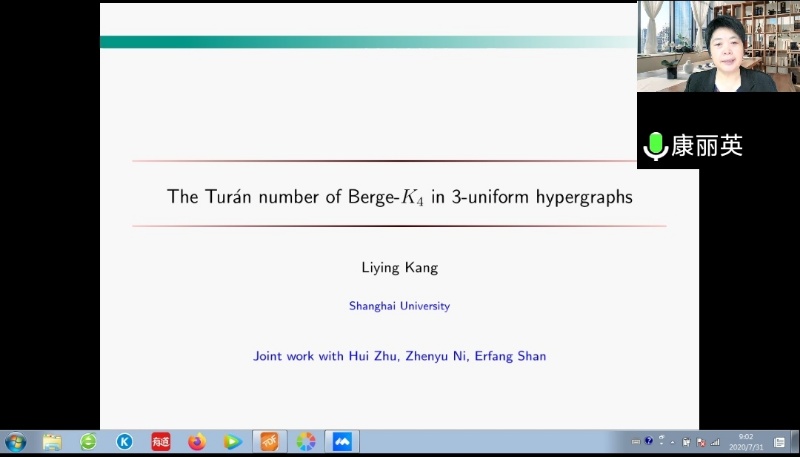 应我院邀请,7月31日上午,上海大学康丽英教授在腾讯会议作了题为《The Turan number of Berge-$K_4$ in 3-uniform hypergraphs》的报告。相关师生聆听了此次报告,报告由卢福良教授主持。