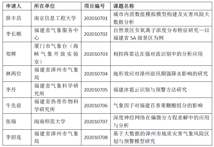 经过ok138cn太阳集团开放课题评审委员会与党政联席会议通过,现将2020年度数字福建气象大数据研究所与数据科学与统计重点实验室开放课题入选项目名单公布,本年度开放课题立项总数为16项。