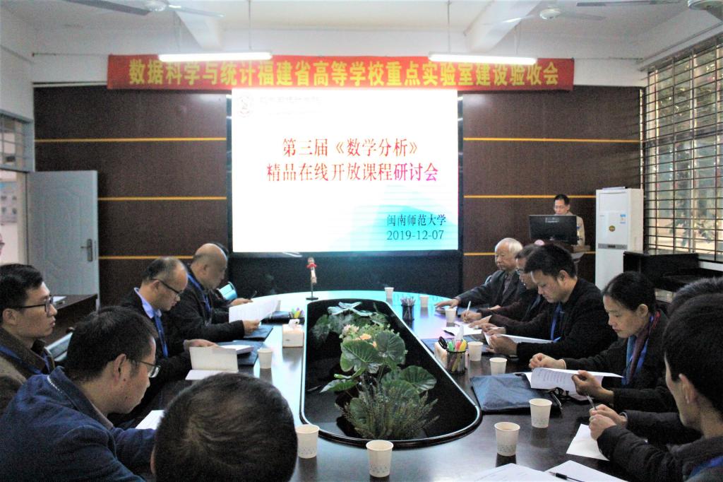 12月7日,为加强各校数学教师之间的交流,提高我校《数学分析》课程的教学水平,由我校ok138cn太阳集团主办的第三届《数学分析》精品在线开放课程研讨会在砺志楼114会议室正式拉开帷幕。来自海南师范大学、泉州师范学院、宁德师范学院、莆田学院、三明学院、北京超星公司的高校、企业10多名专家学者参加会议。开幕式由ok138cn太阳集团副院长黄韩亮副教授主持。