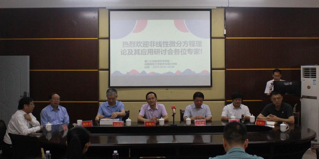 校长李顺兴,“闽江学者”特聘教授、厦门大学科技处处长谭忠教授分别在开幕式上致辞。李顺兴指出,我校始终重视数学学科的发展,学校正积极探索与地方、企业合作共建产业学院,增设本科新专业、拓展研究生培养新领域,通过推进相关领域学科建设,带动新工科及应用型学科建设。谭忠指出,此次研讨会汇集了非线性偏微分方程理论及其应用领域诸多专家学者,希望通过会议加强国内外数学物理与偏微分方程同行之间的学术交流,促进相关领域研究的发展。
