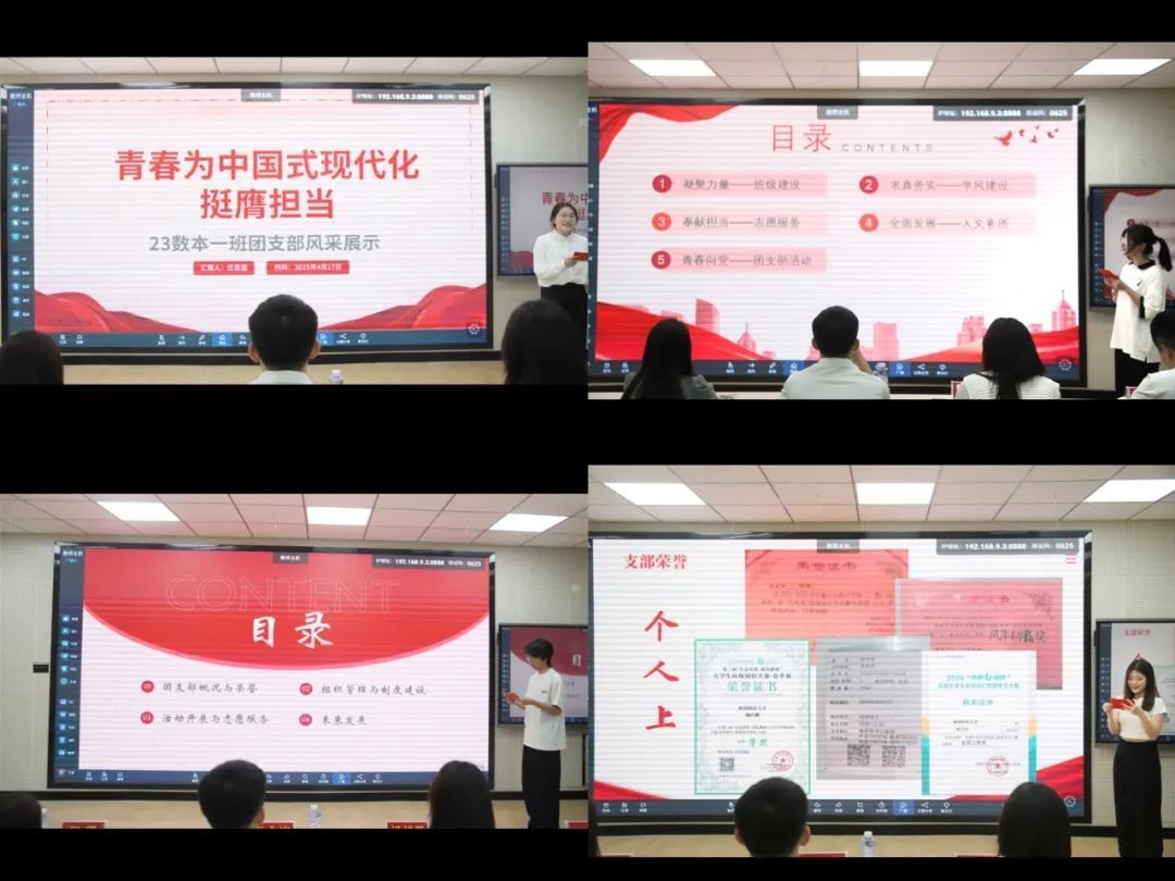 在评选展示会上,各团支部和班级的代表依次登场,他们用详实的数据、生动的案例和真挚的情感展现了班集体的凝聚力和战斗力,诠释了新时代青年的责任与担当。通过精心制作的PPT、精彩的视频和生动的讲解,全方位、多角度地展示了班集体在思想建设、学风建设、社会实践、志愿服务等方面取得的优异成绩。