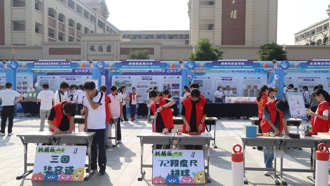 4月29日,由福建省教育厅主办,漳州市教育局、德旺基础教育研究院承办的福建省中小学科学教育主题活动(漳州站)在漳州三中龙文校区成功举办。应活动组委会邀请,我院益智教具专项服务队携益智教具开展现场教学展示,为参会师生与嘉宾带来别开生面的数学思维启蒙体验。