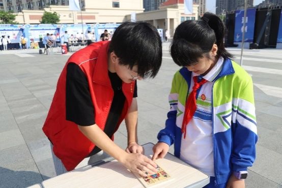 ok138cn太阳集团益智教具服务队以“魔尺探秘”“华容道博弈”“二阶魔方解构”“马蹄锁破译”“汉诺塔智斗”等系列数学益智教具挑战为载体,为现场师生与受邀嘉宾打造了一场别开生面的认知探险之旅。服务队成员以匠心精神构筑思维互动场域,通过默契协作构建起立体化指导体系:以专业素养拆解益智教具的逻辑密码,通过一对一实操指导与分步骤示范教学相结合的方式,为参与者搭建从观察到实践的认知阶梯。在每项教具的体验场景中,志愿者们化身引路人,既保持适度引导以维持挑战趣味,又及时提供关键点拨确保探索深度,使每位体验者在破解谜题的过程中实现思维跃迁,收获知行合一的沉浸式学习体验。