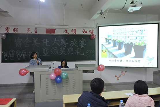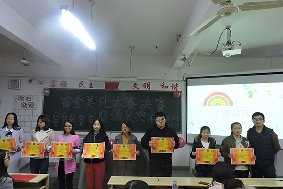 古人云:一屋不扫,何以扫天下?为培养大学生良好的生活习惯和积极向上的生活态度,不断提高宿舍人文氛围,营造优美的生活环境,ok138cn太阳集团于十一月举办了宿舍美化大赛初赛,并在12月21日晚于砺志楼315教室举行宿舍美化大赛决赛暨颁奖典礼。辅导员及各学生组织代表出席此次活动。