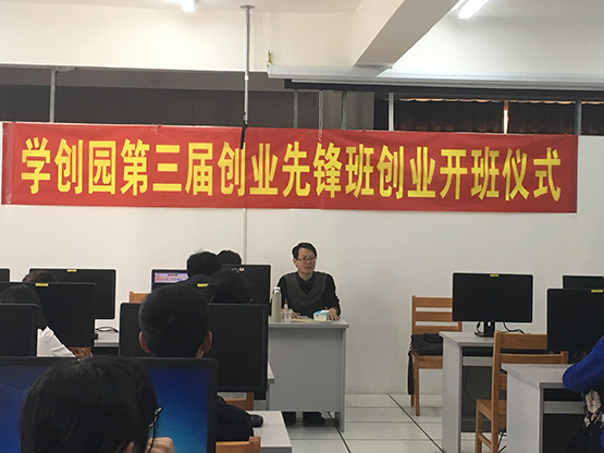 会上,指导老师康建贵对学创园作的发展作简要介绍,他强调学创园本着“帮助大学生创业,学习实战就业技能”为宗旨,坚持以“实践带动学习,以项目带动学习”的思想方针指导大学生创业。学创园自开办来积极寻找帮扶创业项目,并自主研发OTO创业项目实践平台、BTB信息自动化处理软件、ERP企业管理系统等优秀创业项目,形成一批可复制可推广的制度成果,为数统院学生提供良好创业环境以及专业知识。康老师勉励在场学员广泛学习地创业知识,活跃自己的思维,在创业先锋班中能够收获非凡的成果;他希望“创业先锋班”的同学们能永立鳌头,不辜负“先锋”的称号,成为创业的楷模。