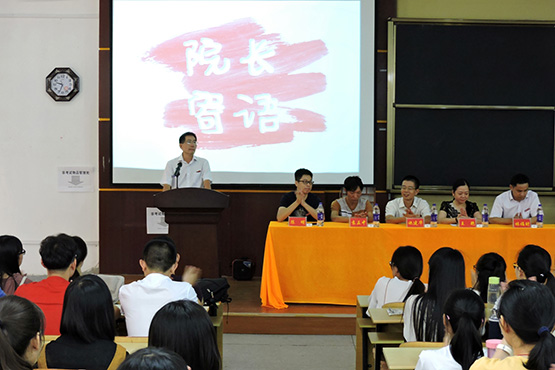 典礼结束后,为促进新生尽快适应大学的学习生活,黄韩亮副院长为17级新生介绍学院教学教务系统,从教师分布、专业简介等多方面向学生们详细介绍学分制学务管理等规章制度,希望学生们能在未来四年里,积极主动地锻炼自己,找寻属于自己的人生价值。