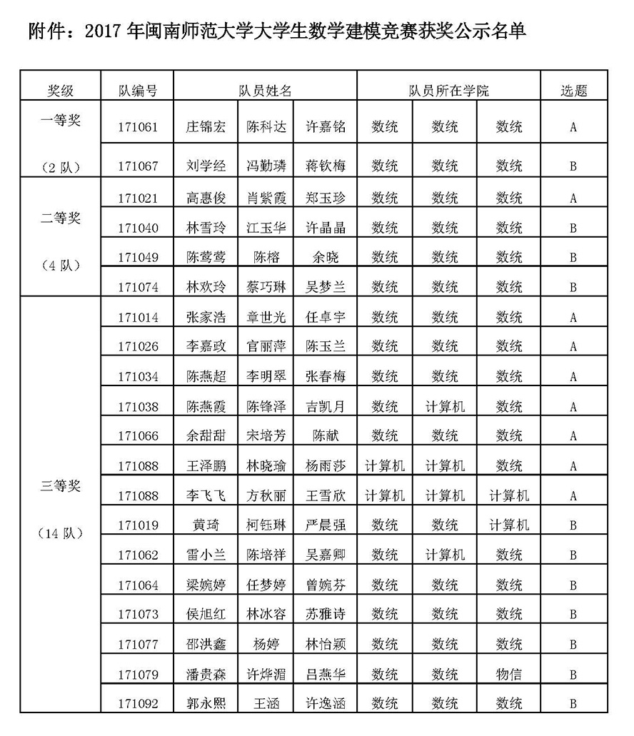 2017年OK138太阳集团大学生数学建模竞赛评阅工作已于2017年6月24日结束。为严肃竞赛纪律,杜绝不当之风,竞赛组委会决定设立获奖结果争议期,为期5天。现将获奖名单征求异议稿公布如下,公开征求广大师生的意见。