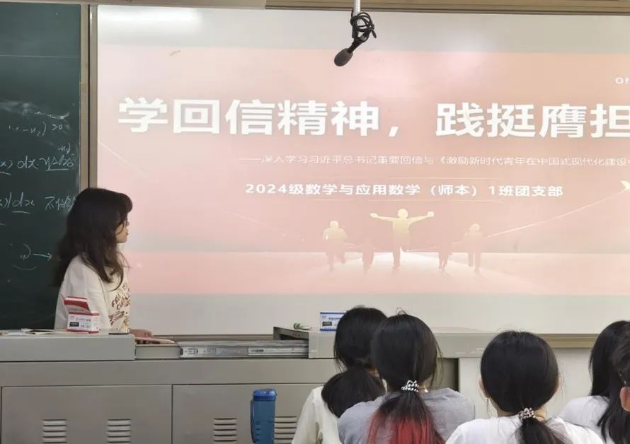 24数学师1班团支部组织团员精读习近平总书记回信与《求是》文章,围绕“戍边支教志愿者的青春选择”展开研讨,提炼出“爱国、奉献、担当”三大精神内核。支教志愿者扎根边疆的事迹引发强烈共鸣,团员们纷纷表示:他们以实际行动诠释了新时代青年的价值选择,生动践行了“强国有我”的青春誓言,展现出当代青年勇担使命的精神风貌。