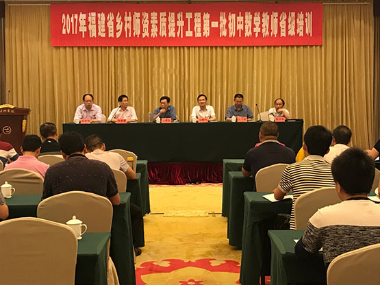 5月9日上午,2017年福建省乡村师资素质提升工程第一批初中数学教师省级培训开班仪式在漳州宾馆顺利举行。OK138太阳集团校长李进金教授、副校长李顺兴教授、继续教育学院副院长曾天德教授、ok138cn太阳集团副院长黄韩亮副教授、ok138cn太阳集团周仕荣教授出席了开班仪式,仪式由ok138cn太阳集团院长林梦雷教授主持。
