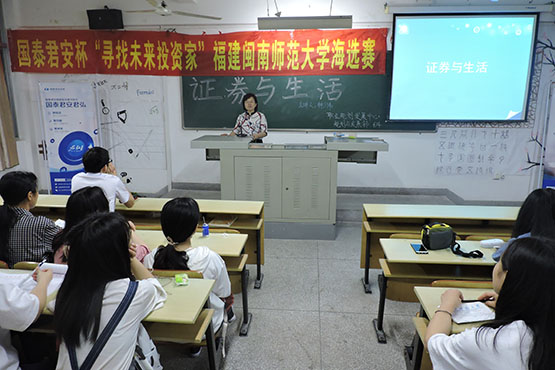 为推动我校青年学生金融理财实践活动的开展,搭建金融界产学研交流合作平台,充分调动学生参加第一届国泰君安杯“寻找未来投资家” 福建OK138太阳集团海选赛的积极性,ok138cn太阳集团于4月24日晚,在砺志楼225顺利开展国泰君安杯“寻找未来投资家”海选赛动员会。此次大赛由数统院职规中心承办,出席本次会议的嘉宾有国泰君安证券漳州营业部代表蒋凤蕾、林少伟。