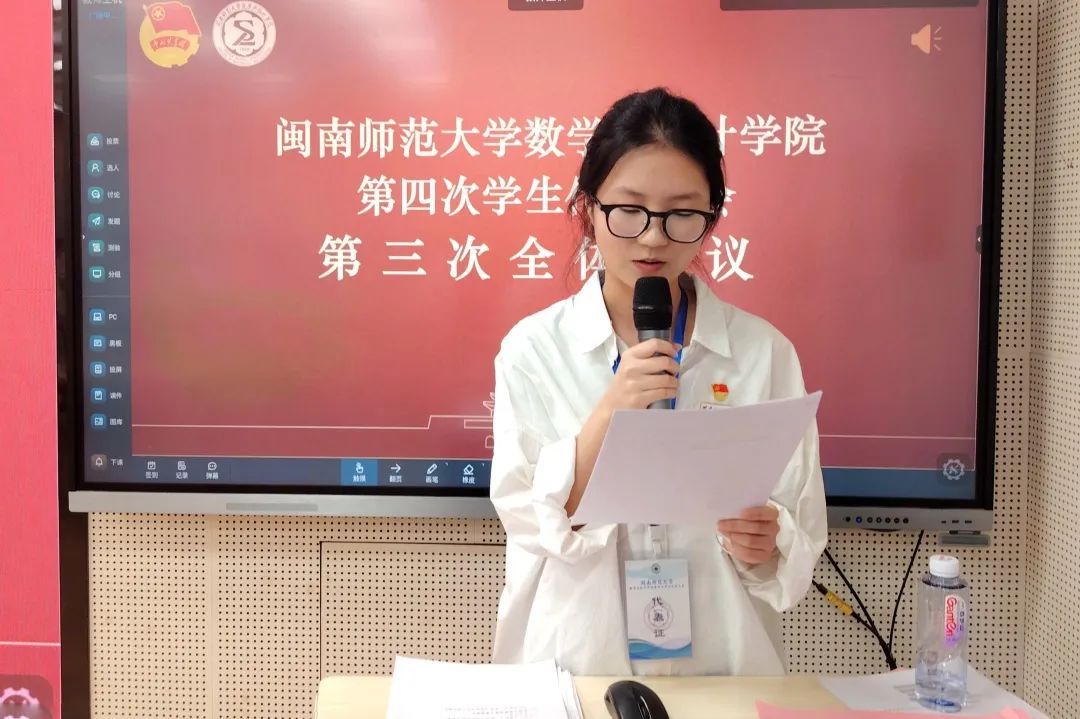 开幕式结束后,大会召开第一次全体会议。院学生会主席团成员苏雅玲代表2024-2025学年学生委员会作了题为《心怀鸿鹄之愿,肩负时代之托;于笃行不怠中奏响新征程的奋斗乐章》的工作报告,由全体代表听取、审议。报告全面总结了近一年来我院学生会的工作重点与亮点,客观分析了存在的问题与不足,并提出了未来一年的奋斗目标和主要工作任务。