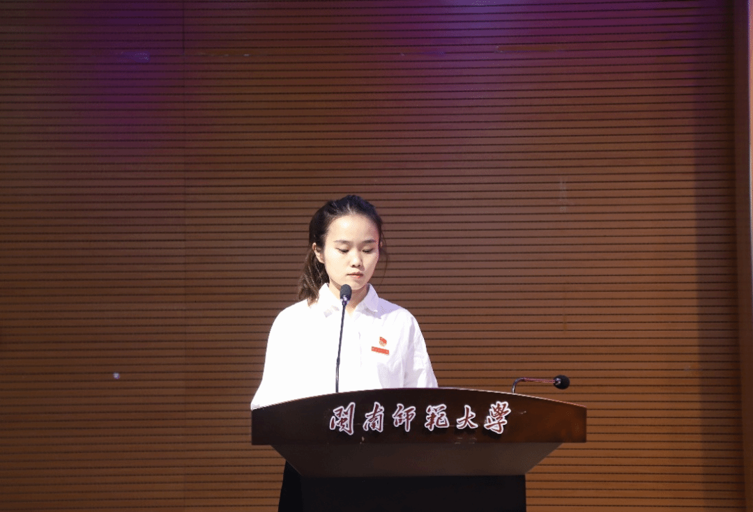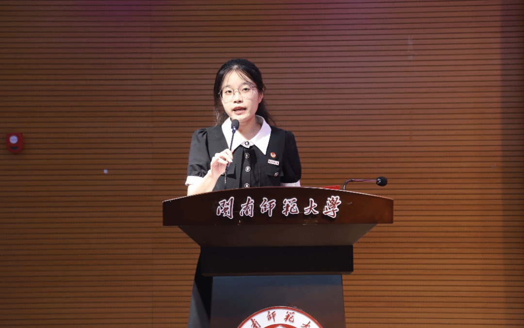2021级数学与应用数学(师范)5班柯雅玲作为学生代表,围绕师范专业理想与成长经历展开发言。她以成为优秀人民教师为目标,在第十一届福建省高校师范生教学技能大赛中荣获一等奖。回顾备赛,柯雅玲同学感谢学院提供了平台与指导,并分享自己从课前教材研读、教学环节设计,到授课时以学生为本、课后反思改进的经验。同时她也呼吁同学们铭记初心、勇担使命,在教育路奋力前行。