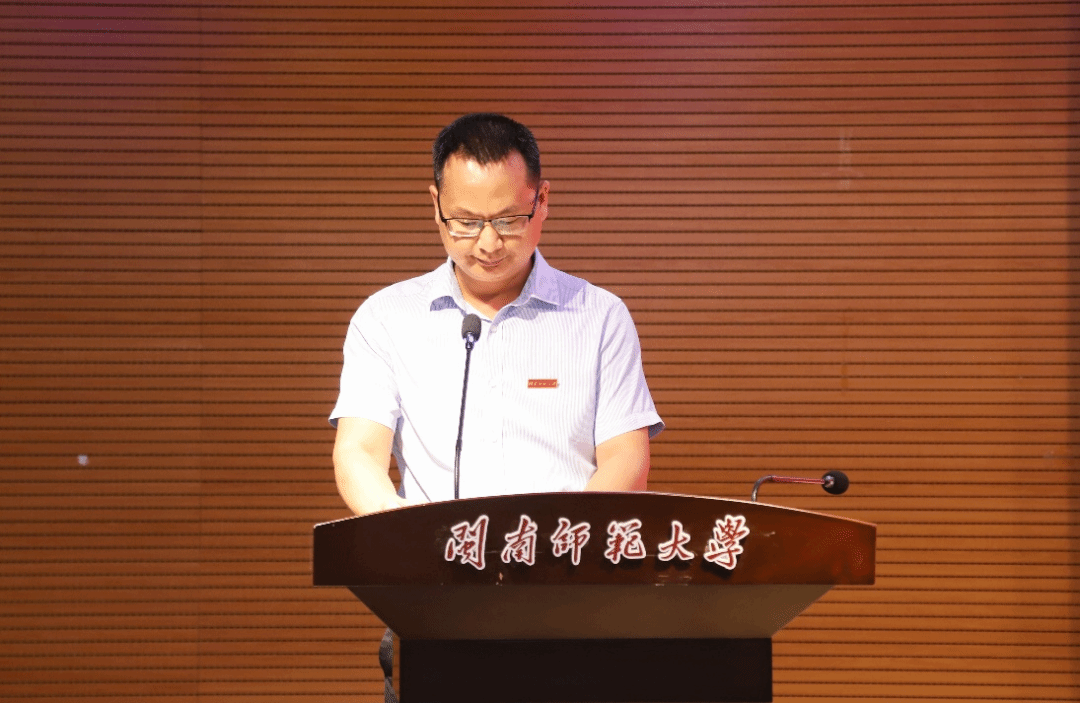 黄韩亮向获奖集体和个人表示祝贺,他指出成绩的取得是学院“三全育人”实效与师生协同努力的体现。他还强调新时代是属于奋斗者的时代,新闽师为青年提供了逐梦舞台,并从胸怀家国勇担使命、勤学善思锤炼本领、脚踏实地挺膺担当三方面对青年提出殷切期望。