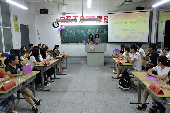 为推动“两学一做”专题教育深入开展,营造“学党章、用党章、践行党章”的良好氛围,5月15日晚,我院党建中心在砺志楼101举办“学党章党规,展青春风采”之“一战到底”知识竞赛,学院党务秘书林晓、党建中心各学生干部及15级各班优秀学习小组代表参加了本次活动。