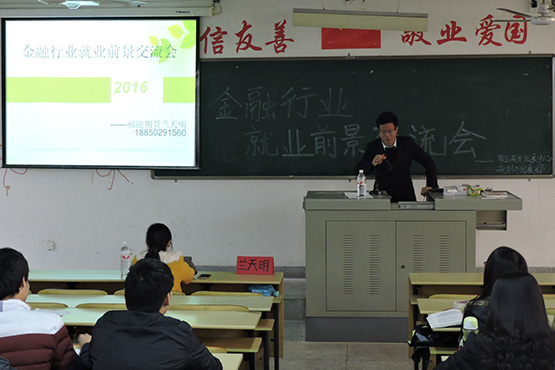 3月24日下午,ok138cn太阳集团职业规划发展中心邀请09级优秀校友、福能期货有限公司经理兰天明回校与非师范专业的同学交流。