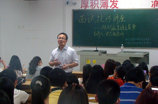 10月29日晚,ok138cn太阳集团与计算机学院在砺志楼316联合举办 “规划赢生涯之蓄势”面试指导讲座。讲座邀请了我校KAB创业讲师、国家拓展培训师梁忠福老师为高年级同学讲解了求职中简历制作的注意事项、面试的相关技巧和职业规划的重要性。