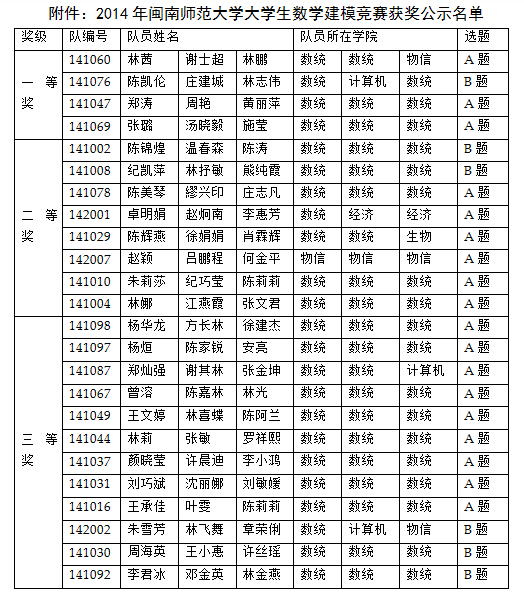 附件:2014年OK138太阳集团大学生数学建模竞赛获奖公示名单