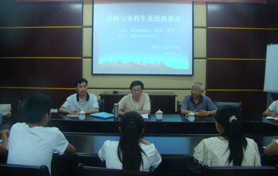 随着党的群众路线教育实践活动的深入开展,李进金校长一直牵挂着学生的成长成才,不断思考着如何把深入推进导师制与学生专业兴趣的培养、学习困惑的解决和未来人生目标的引导有机结合起来。他这样想也积极付诸实践,主动担任起ok138cn太阳集团大一至大三16名有志在数学专业领域发展的同学的成长导师。6月6日下午,他与指导的16名本科生学生在砺志楼114举行首次见面会。