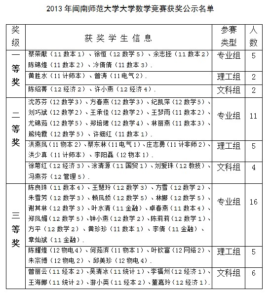 2013年OK138太阳集团大学数学竞赛试卷评阅、评奖工作已于2013年12月5日结束。为严肃竞赛纪律,杜绝不当之风,竞赛组委会决定设立获奖结果争议期,为期7天(2013年12月6-12日)。现将获奖名单征求异议稿公布如下,公开征求广大师生的意见。