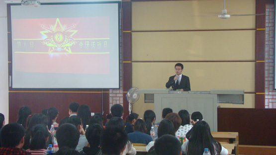 2013年11月7日下午,由我院学生党建中心组织的第八届党团活动月开幕式在砺志楼120召开。院党总支秘书林晓老师、院团委副书记陈明老师、各年级辅导员、学生党员代表、我院五大学生组织代表以及我校其他部分兄弟院系学生组织代表等参加了开幕仪式。