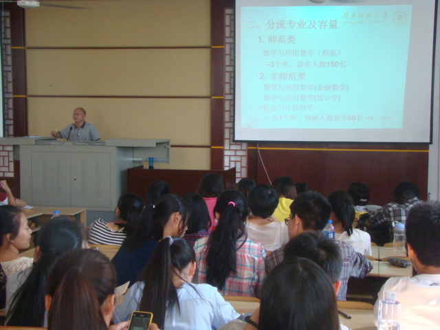 陈跃辉老师首先介绍了专业分流的基本原则和具体的实施方案。接着,10级的三位同学结合自身的学习经历和经验,为12级的同学们介绍了数学与应用数学(金融方向)、数学与应用数学(统计方向)、信息与计算科学三个专业的学习内容和就业前景。陈明老师则结合2012届毕业生的就业数据,介绍了四个专业的就业情况,为同学们提供参考和建议。