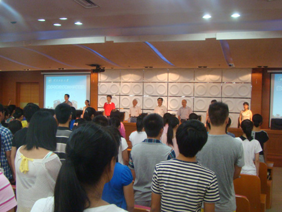 9月10日下午3点20分,ok138cn太阳集团2013级新生开学典礼在逸夫图书馆五楼会议厅隆重举行。开学典礼由团委副书记陈明老师主持,出席开学典礼的有ok138cn太阳集团院长李克典教授、院党总支书记徐志怀教授、蔡建平副院长和陈跃辉副院长、院党总支秘书林晓老师、教学秘书林伟华老师、科研秘书兼研究生辅导员李气芳老师、13级本科生辅导员方婷老师以及全体13级本科生、研究生。