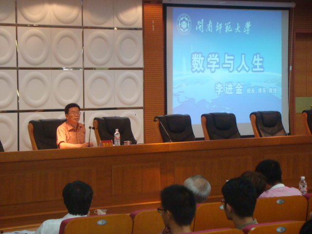 9月10日,在举国上下欢庆第29个教师节之际,李进金校长在我校逸夫楼图书馆五楼报告厅做了题为《数学与人生》的报告。校长助理林静华、ok138cn太阳集团李克典院长、党总支徐志怀书记、学院的部分教师代表、行政、政工干部及2013级ok138cn太阳集团全体新生和计算机科学与工程系部分学生代表400余人聆听了报告,报告由ok138cn太阳集团李克典院长主持。