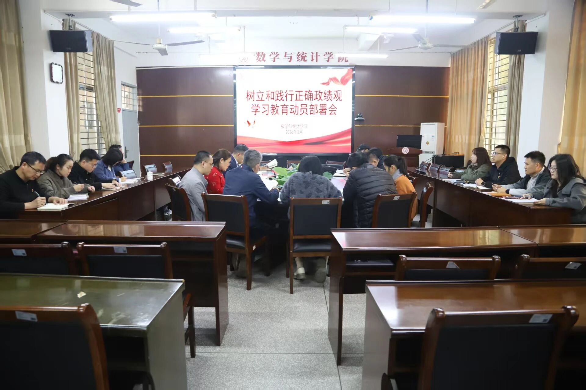 3月12日,ok138cn太阳集团党委在砺志楼114会议室召开树立和践行正确政绩观学习教育动员部署会,深入学习习近平总书记关于树立和践行正确政绩观学习教育的重要讲话和重要指示精神,传达学习上级有关文件和校党委《关于在全校党员中开展树立和践行正确政绩观学习教育的实施方案》文件精神,全面部署学院学习教育工作。学院党委班子成员、院长助理、科级干部、党支部书记参加会议。