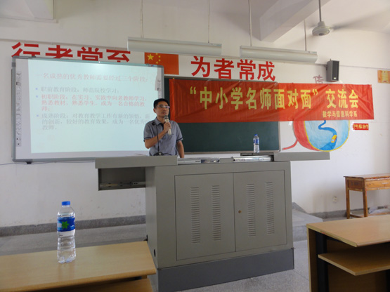 为了提高师范生教育教学能力,加强对09级实习支教学生的岗前培训, 6月 9日下午,数学系邀请三位一线名师举办了“中小学名师面对面” 交流会。09级在校师范生和“卓越教师”试点班学员共111人参会,会议由数学系辅导员郑少茹老师主持。