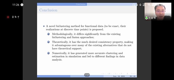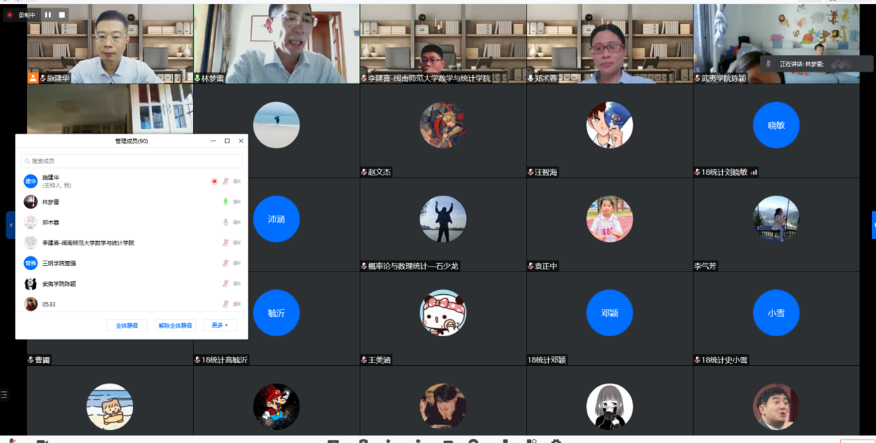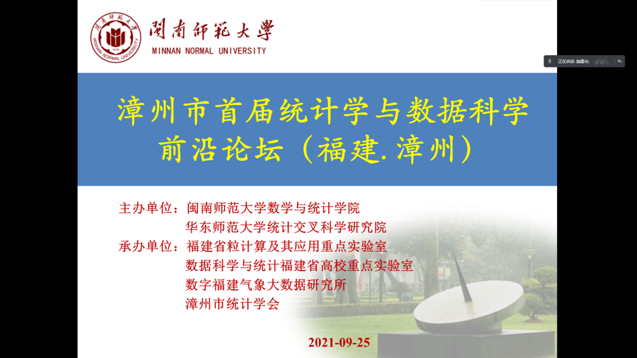 9月25日,漳州市首届统计学与数据科学前沿论坛以线上方式成功举办。本届论坛由ok138cn太阳集团、华东师范大学统计交叉科学研究院联合主办,福建省粒计算及其应用重点实验室、数据科学与统计福建省高校重点实验室、数字福建气象大数据研究所、漳州市统计学会联合承办。来自华侨大学、福州大学、福建师范大学、福建农林大学、江西财经大学、塔里木大学、集美大学、厦门理工学院、闽江学院、泉州师范学院、三明学院、武夷学院、厦大嘉庚学院、宁德师范学院、仰恩大学等全国各地高校及漳州市统计部门近140名专家学者及统计学相关专业学生参加了本次论坛。