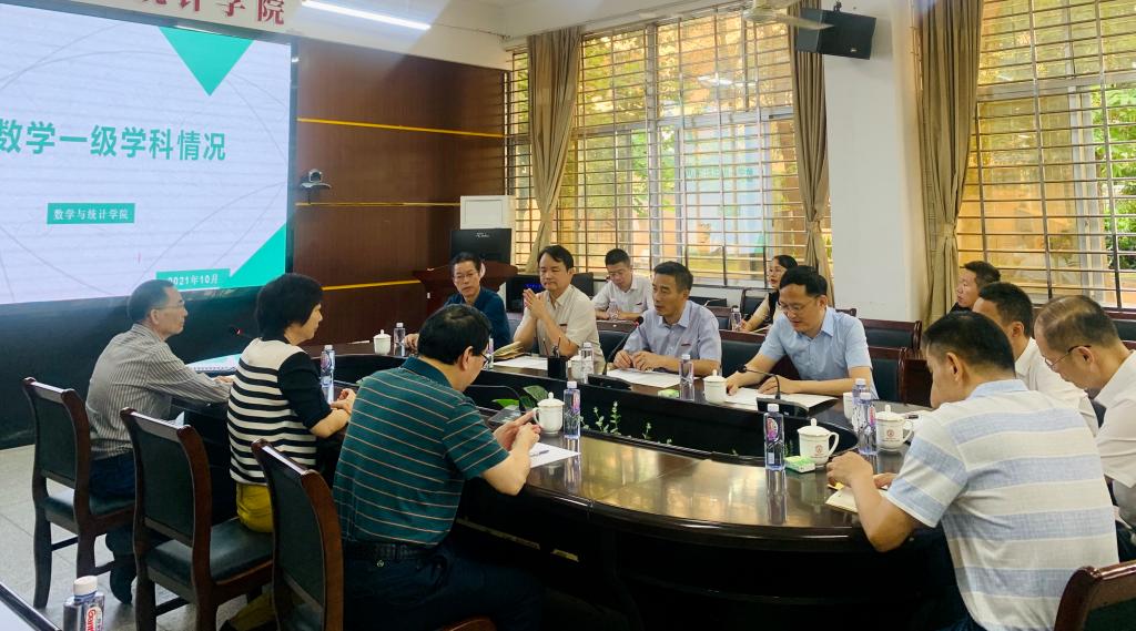 2021年10月20日上午,学校党委书记吴彬镪,党委副书记、校长李顺兴,党委常委、副校长张龙海等一行来我院深入调研学位点建设工作,并对我院数学一级学科工作予以指导。