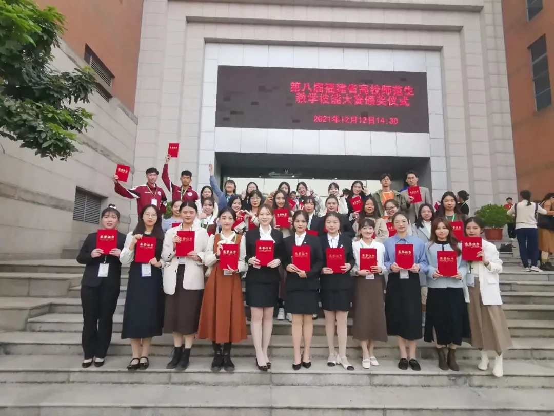据悉,福建省高校师范生教学技能大赛是我省规模最大、最具影响力的高水平师范生技能赛事。本次赛事充分展现了我院师范生的风采,彰显了我院教师教育办学特色,提升了我院师范生的教学技能水平和就业竞争力。