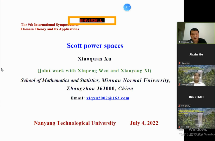 我院院长徐晓泉教授受邀在第九届Domain理论及其应用国际学术会议(ISDT'22)上做大会报告