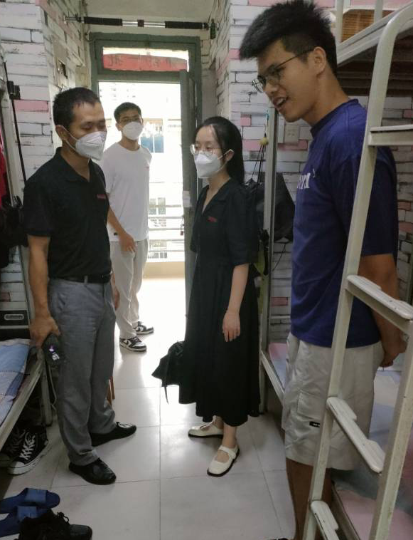 8月28日,学院党委副书记胡海智、团委书记罗晓林以及各级辅导员来到学生宿舍走访慰问,了解学生本学期返校报到情况,为同学们送上学院的关心和温暖。