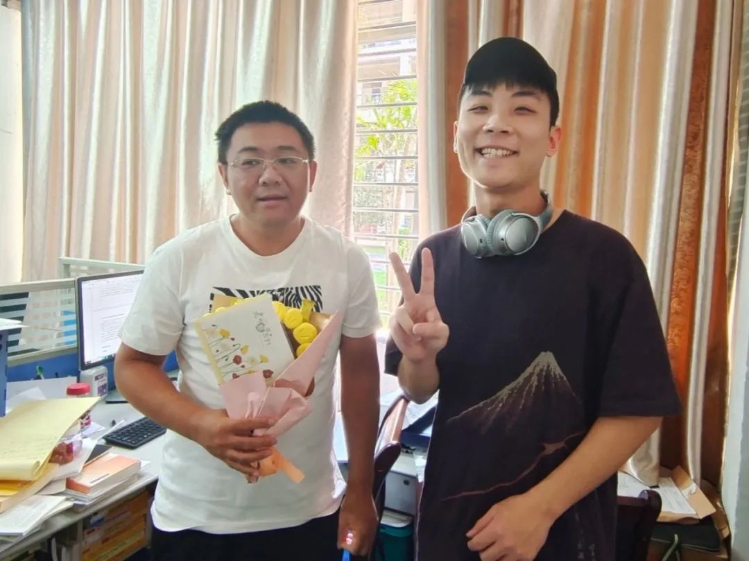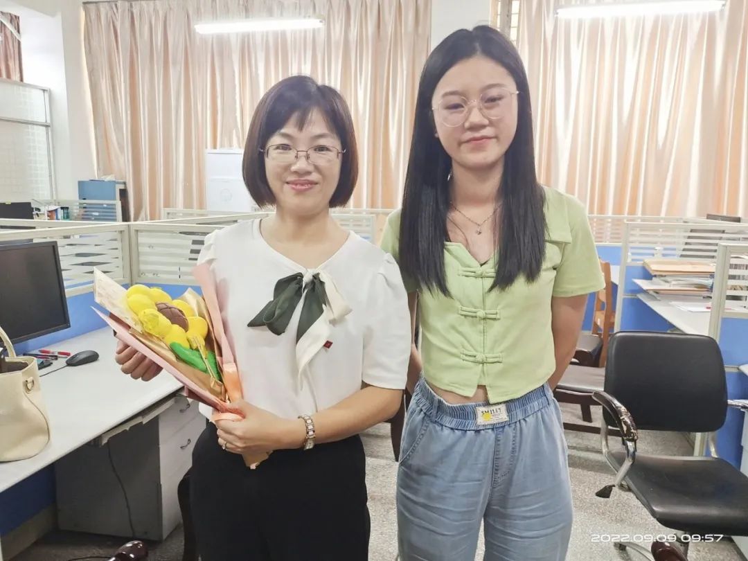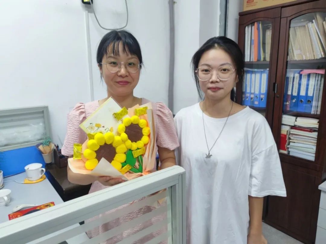数统学子们为老师送上自己亲手制作的向日葵花束。