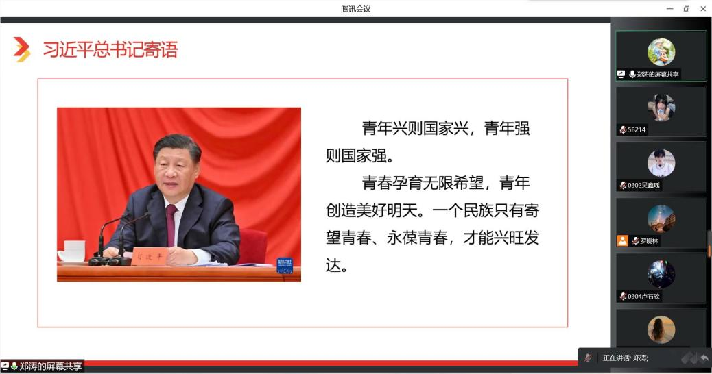 9月18日下午,学院党委副书记胡海智老师以线上会议的方式为2022级新生进行理想信念、文明养成、学涯规划、劳动实践教育。会上,党委副书记胡海智老师鼓励同学们要增强自身的理想信念、文明素养和社会实践本领,在实践中培养良好习惯。同时要规划好大学生涯,劳逸结合,努力提升自身能力,才能做到不负时代不负卿。