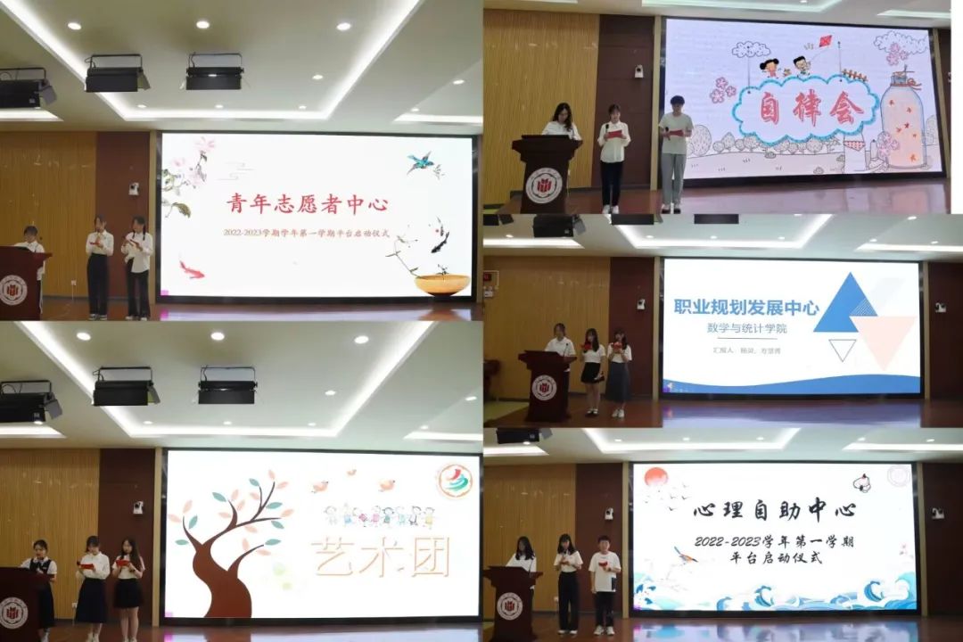 首先,在大学生成长成才平台启动仪式上,各学生组织结合PPT对本组织展开的各项工作进行总结,介绍了工作的成效以及未来工作的规划。