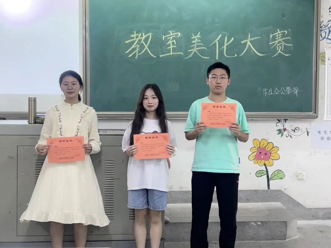 到场的评委们在听完六个班级的讲解之后,对各个教室的美化进行了评分,评选出了三个最具创造性和美观性的教室,并为他们进行颁奖。