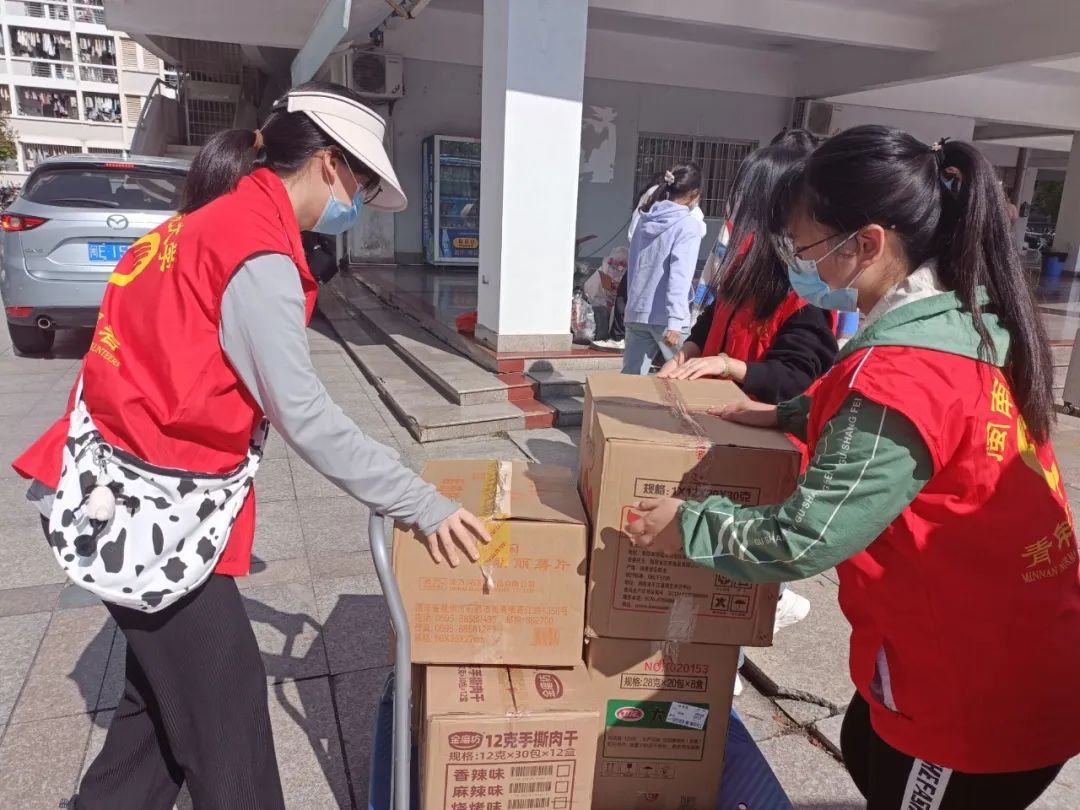 志愿者们为健康隔离同学送餐,积极了解隔离同学的生活所需,尽可能满足隔离同学的需求,为枯燥的隔离生活增添了浓浓的关怀与温情。