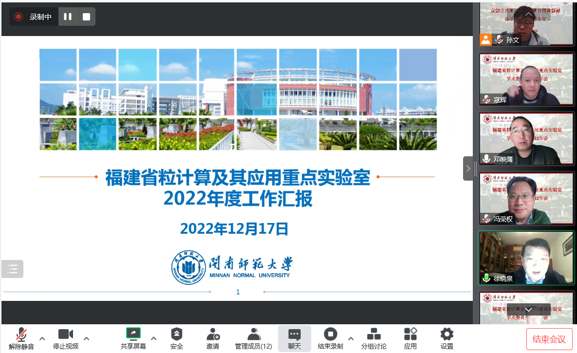 12月17日,福建省粒计算及其应用重点实验室学术委员会2022年会在腾讯会议线上召开。粒计算实验室第三届学术委员会各位专家参加会议,会议由学术委员会主任赵彬教授主持。