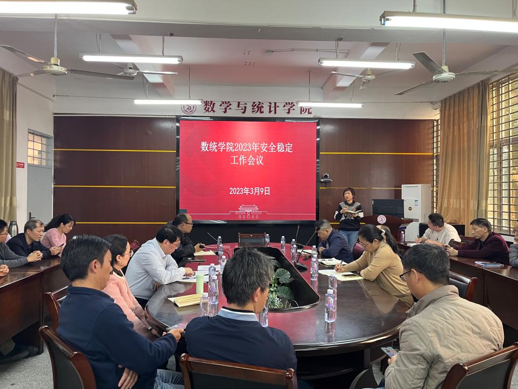 3月9日下午,我院在砺志楼114召开安全稳定工作会议,学院全体教职工参加会议,会议由学院常务副院长黄韩亮主持。