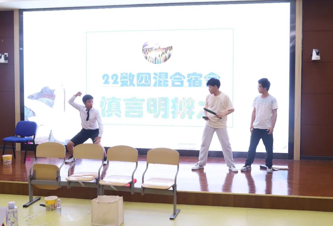 在这一方之室里没有世俗车马的喧嚣,只有奋笔疾书,宿舍是他们可以避开生活的烦恼,在内心修篱种菊的地方,他们以“静、净、竞”为宿舍主要文化,以“慎思之,明辨之”为座右铭,他们带来的是默剧《文明观影》。