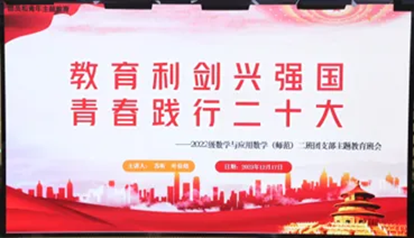 会上,班级团支书苏昕从党的二十大教育精神理论学习出发,围绕“强国复兴”这一主题,结合当前时代特点与“师范专业”这一特色,带领团支部深入学习了“教育是国之大计、党之大计” 、“育人的根本在于立德”等重要精神论断,引领团支部成员交流分享了自身在“如何在新时代做一名优秀的人民教师”、“如何做好个人生涯规划”等方面的学习感悟,突出了“如何以青年之力助力强国复兴”这一重要课题。