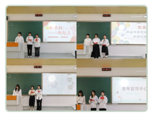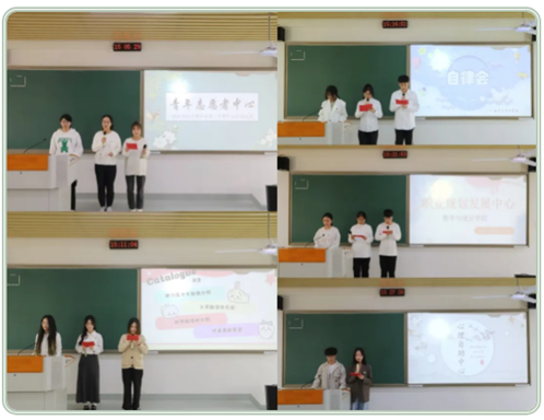 在述职大会上,各学生组织结合PPT对上学期各自展开的工作进行总结,介绍了工作成果以及未来一学期的工作规划。
