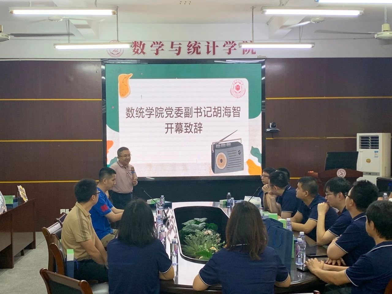 出席本次活动的有数统院党委副书记胡海智、原辅导员陈明老师、原带班学长刘伟强以及10数学系信息班全体校友。
