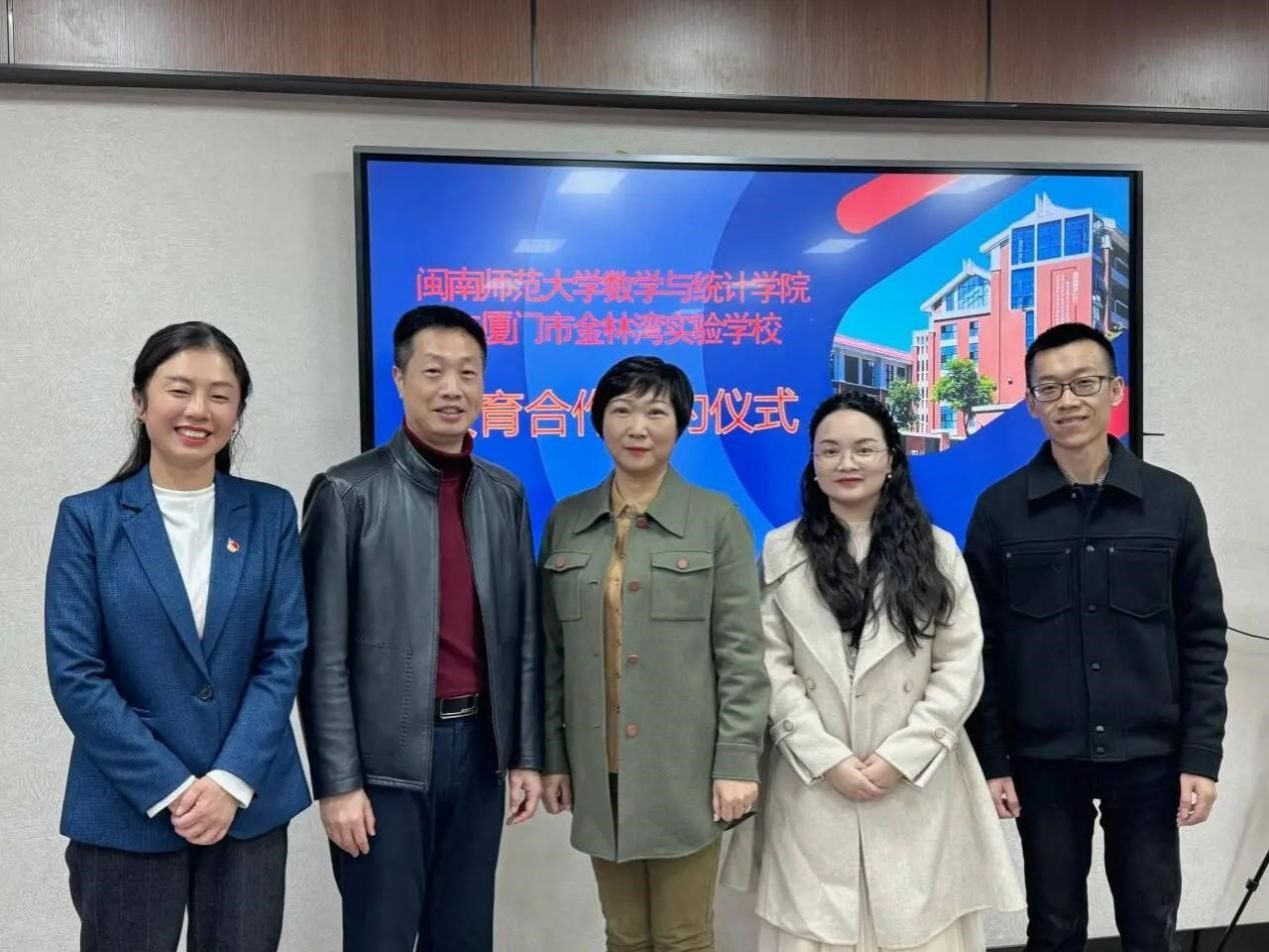 签约仪式开始前,陈晶莹书记向湖里区教育局叶泽军副局长、金林湾实验学校杨单女校长及其他老师,介绍了数统学院的发展历程、办学定位、师范生培养计划以及教育教学研究等方面的情况。随后,双方就学生实习、毕业生就业、今后的学术交流,以及建立常态化交流互动机制等方面进行了深入探讨,旨在实现互惠共赢、共同发展的目标。最后,双方举行了实习基地的共建签约及授牌仪式。