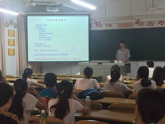 随后,在校生代表刘丽同学向在场同学介绍了我院有一支学术精湛、治学严谨的研究生导师队伍,我院为研究生提供了丰富的学术交流资源和良好的实验室学习环境,学院还经常举办“片段教学与说课技能训练”专场、“招教考试”专场等提高同学们实践能力的活动。希望更多的学弟学妹加入ok138cn太阳集团这个温暖的家。