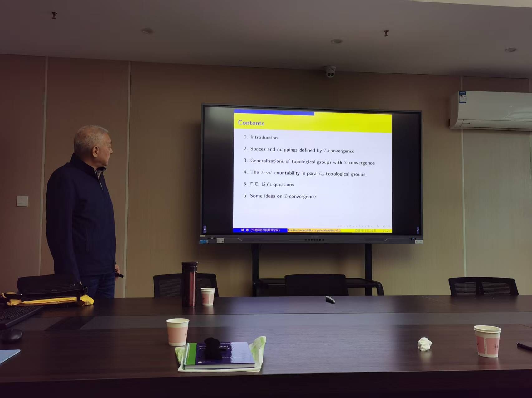 应我院邀请,3月30日早上,宁德师范学院林寿教授在科技楼1209北作了题为《具有理想收敛拓扑群中的第一可数性》的讲座。相关师生聆听了此次讲座,讲座由张静老师主持。