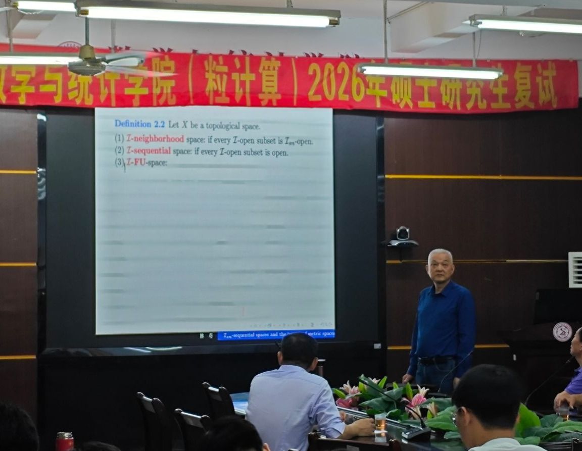 座中,林寿教授围绕Isn序列空间及相关映射的核心研究问题展开系统分享,讲解层层递进、重点突出。他首先从一般拓扑学的经典理想收敛理论切入,明确给出了自然数集上容许理想、I—收敛、I—闭集、I—开集、I—序列邻域、Isn—开集、Isn—闭集等核心基础概念,证明了开集、Isn—开集、I—开集与序列开集之间的蕴含关系引理,这一系列基础框架不仅是广义序列空间研究的重要理论根基,更为Isn—序列空间及相关拓扑性质的研究提供了核心逻辑与研究方向。随后,他结合具体的拓扑构造案例,详细阐释了I—邻域空间、I—序列空间、I—FU—空间、Isn—序列空间、Isn—FU—空间等各类广义拓扑空间的严格定义,系统梳理了不同空间类之间的层级包含关系,并进一步聚焦本次讲座的核心议题,精准刻画各类I—型序列空间的拓扑性质、空间关联与映射不变性,引导在场师生深入思考这一研究方向的学术价值与突破路径。为帮助师生更好地理解抽象的拓扑理论,林寿教授结合自身数十年的研究积累与前沿成果,通过拆解典型反例、梳理严谨推导思路的方式,深入浅出地分析了不同拓扑构造对空间性质的具体影响,清晰论证了各类空间之间的非蕴含关系,让在场师生深刻掌握了广义序列空间理论的核心知识与研究方法。
