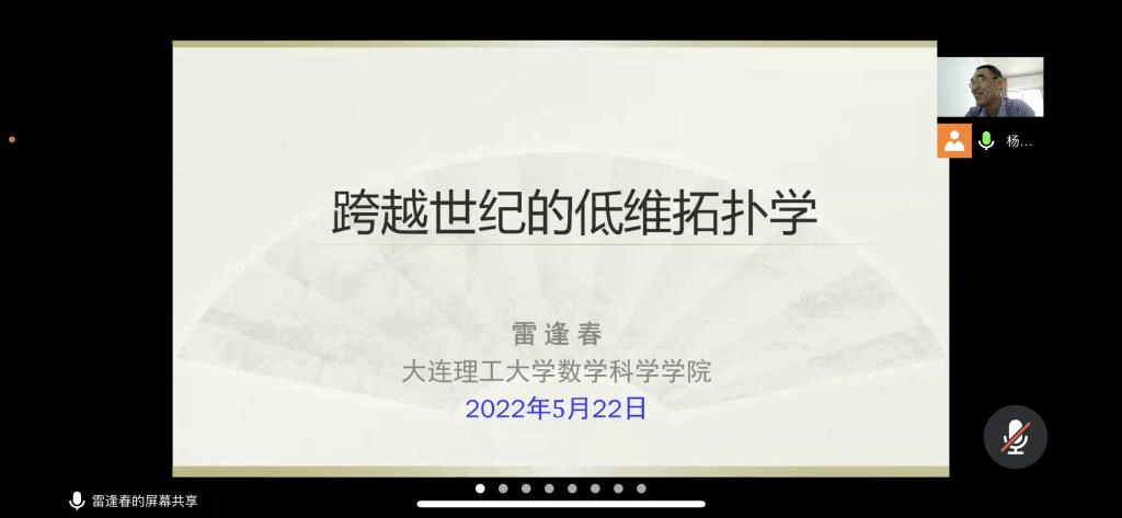 应我院邀请,5月22日早上,大连理工大学雷逢春教授在腾讯会议作了题为《跨世纪的低维拓扑学》的报告。相关师生聆听了此次报告,报告由杨忠强老师主持。
